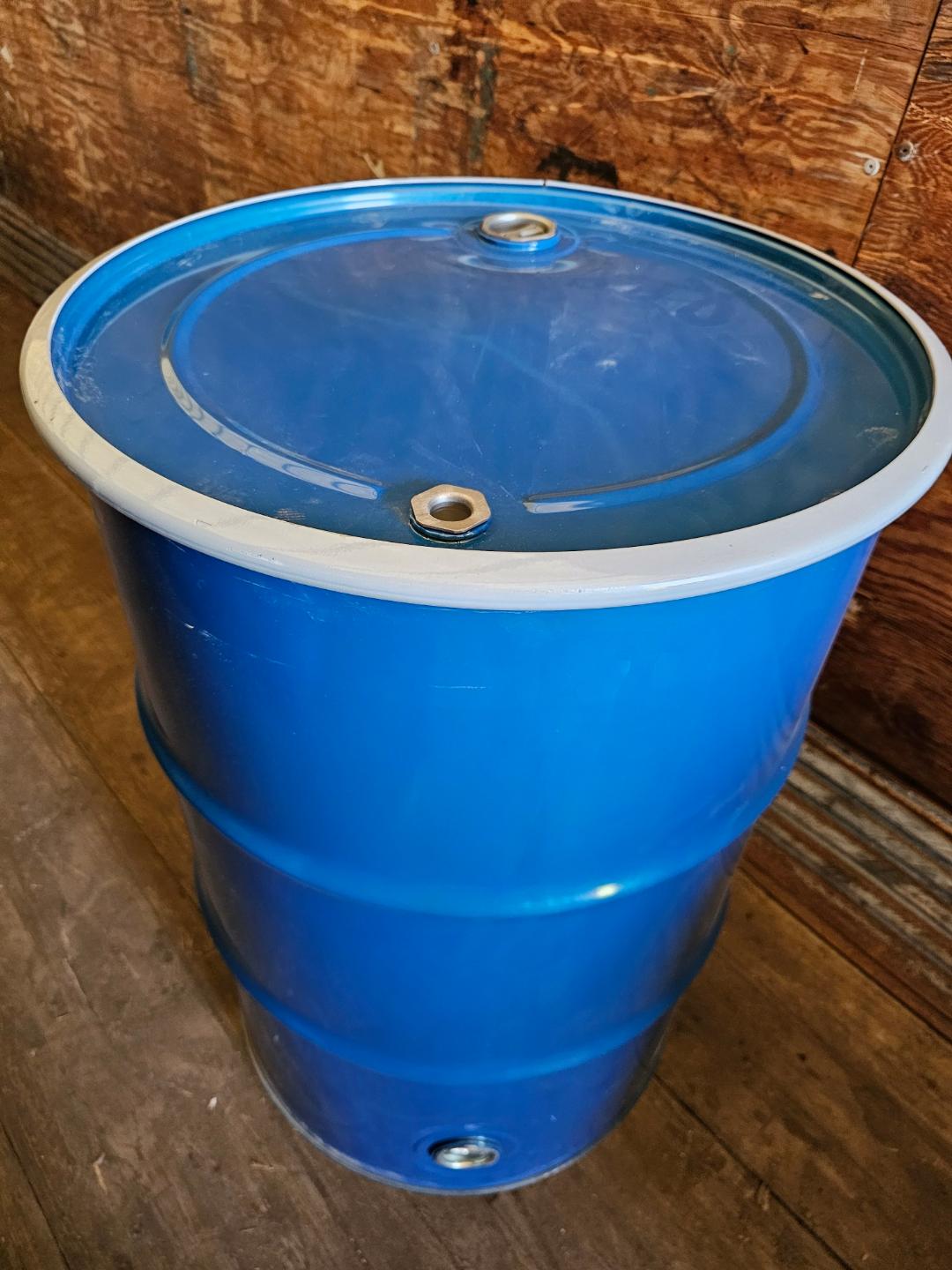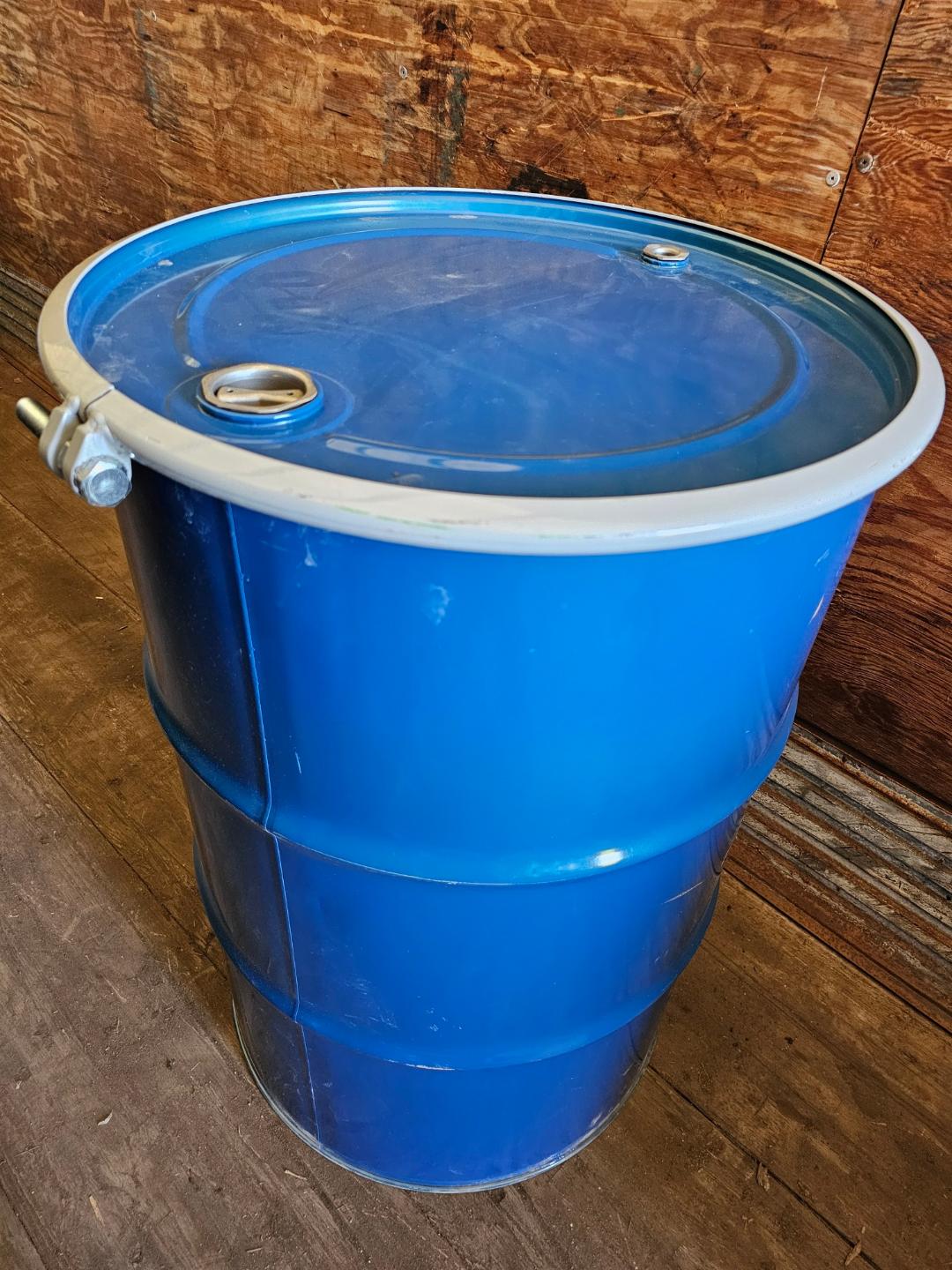 New, 55 gal, Open Top Steel Drum, Bung Lid, Heavy Duty Bolt Ring - Blue / (Third Bung Bottom Of Steel Drum)