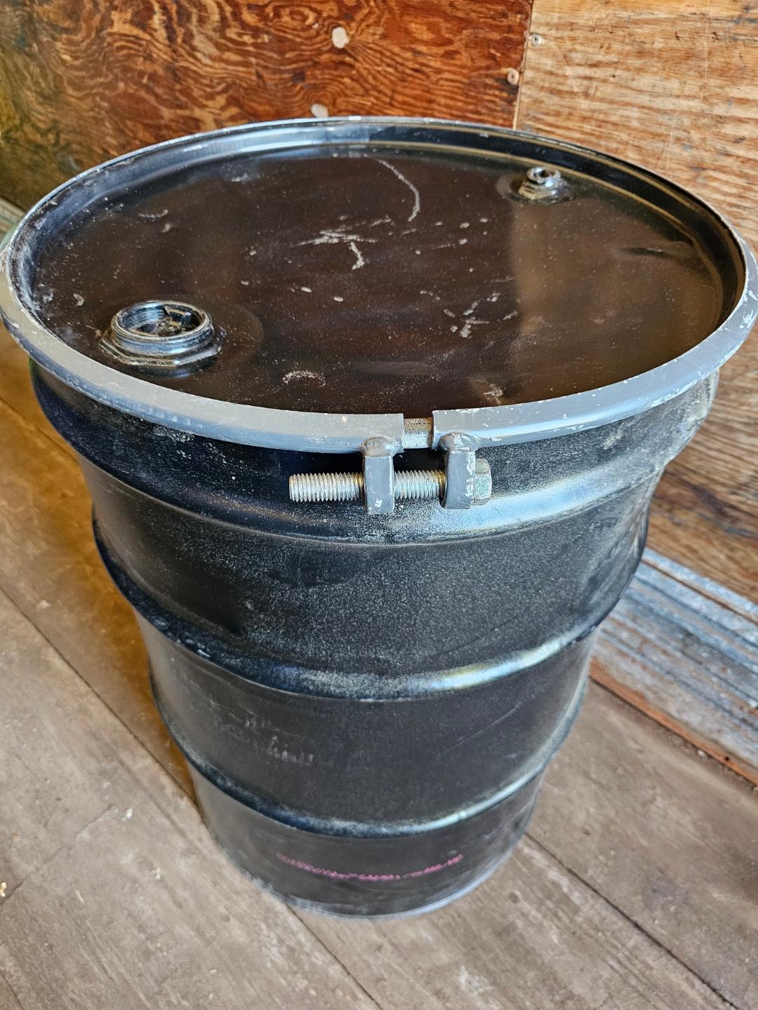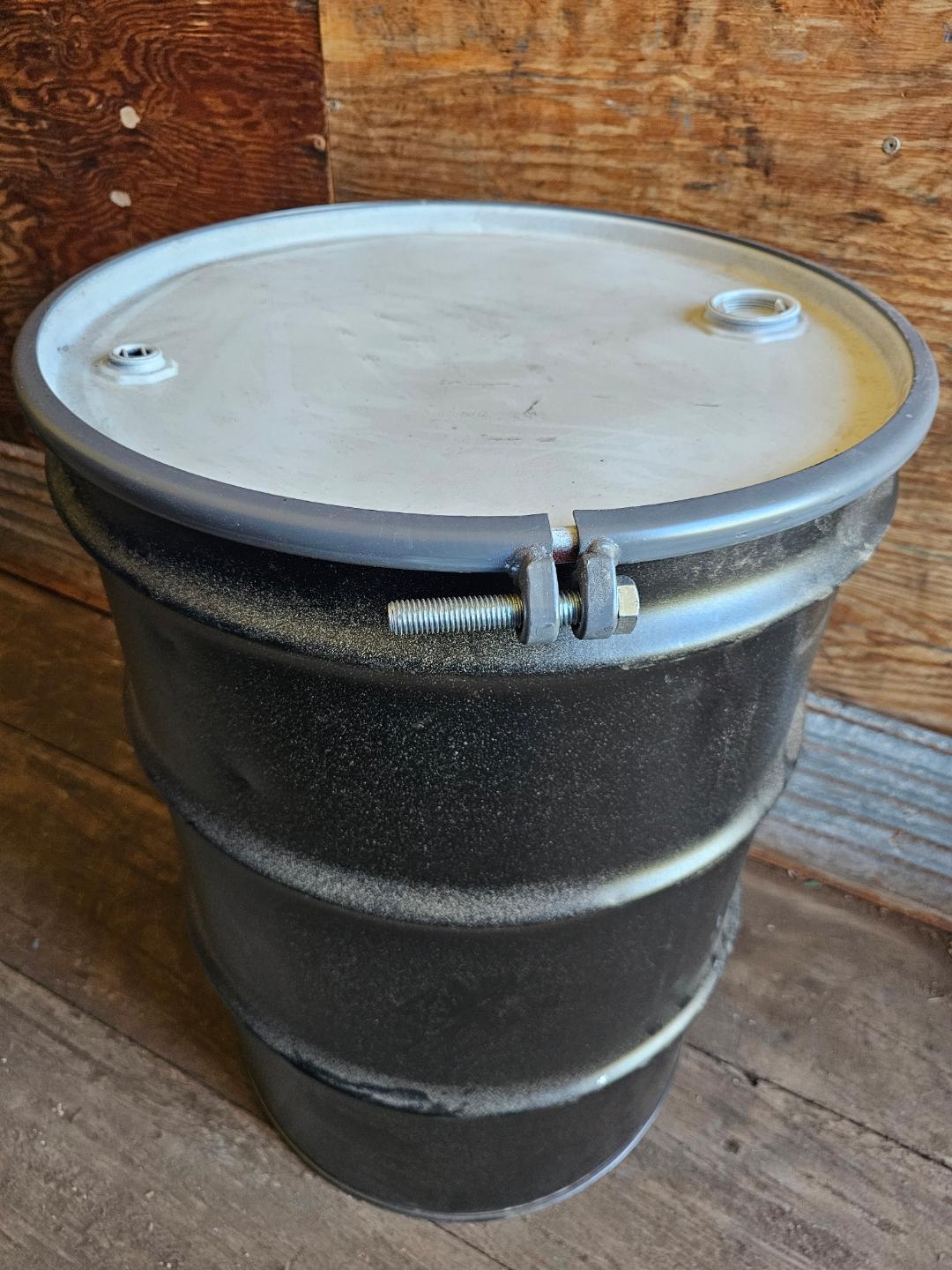 New, 55 gal, Open Top Steel Drum, Bung Lid, Heavy Duty Bolt Ring - Black
